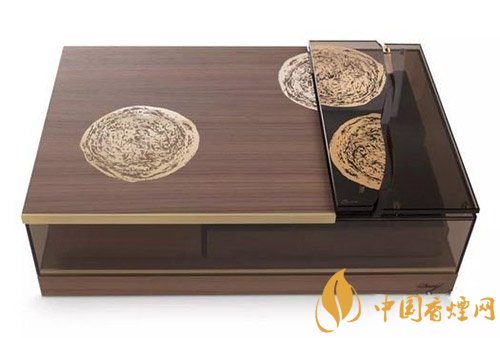 保湿盒还带有圆形的雪茄纹路图案,这个图案是汉娜在瑞士日内瓦大卫杜夫的旗舰店抽的第一支雪茄的复刻品,将其进行保存和渲染在24k金浮雕玻璃和镀金黄铜上。她指出,正是她对手卷雪茄的迷恋,让她将这种情感反映在这款保湿盒上。