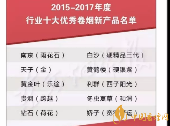 十大优秀卷烟新产品10大优秀卷烟新产品是什么?在今年全国烟草工作会议上,国家烟草专卖局授予“南京”(雨花石)、“白沙”(硬精品三代)、天子(金)、黄金叶(乐途)、贵烟(跨越)、钻石(荷花)、黄鹤楼(硬银紫)、利群(西子阳光、冬虫夏草(和润)、娇子(宽窄好运)为“2015~2017年度行业十大优秀卷烟新产品”称号(名单回顾)。国家局局长凌成兴强调,全行业要学习借鉴“十大优秀卷烟新产品”的宝贵经验,进一步明确目标定位、优化产品布局、提升品牌形象,有效发挥政策引导和市场竞争作用,持续提高重点品牌和主导规格集中度,切实提高新品培育成功率。