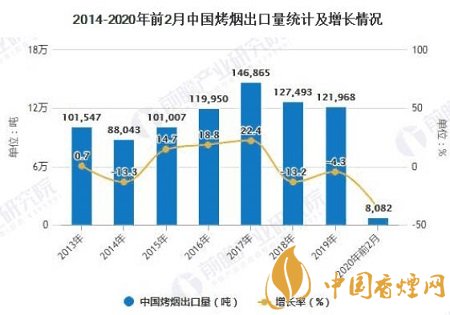 据中国海关总署数据显示,2019年全年中国烤烟出口量达到了121968吨,累计下降4.3%。截止至2020年1-2月中国烤烟出口量达到8082吨,相比上年同期减少了4556吨,累计下降36.1%。